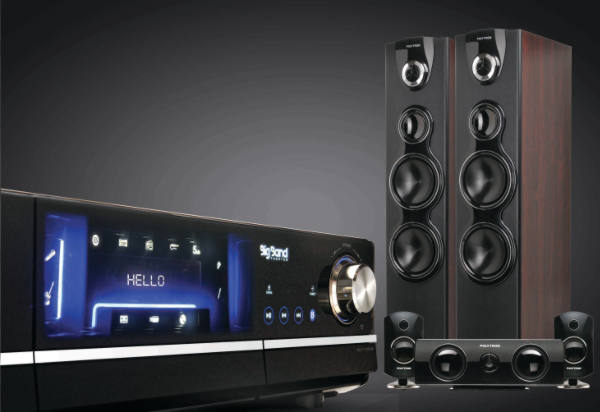 Polyrtron Big Band didesain dengan 3 way floor standing speaker untuk menghasilkan suara yang kuat dan bertenaga. Mengusung teknologi rocket blaster engine, speaker diletakan pada bagian bawah body untuk menjamin suara bass yang konsisten di setiap kontur lantai rumah. Selain itu fitur Bluetooth untuk memudahkan memainkan musik dari gadget tanpa harus menggunakan kabel. Selain itu finishing-nya menggunakan touch panel sehingga tampilannya sangat mewah.