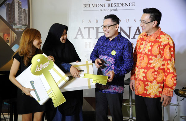 Gapura Prima Group (GPG) melalui PT Mitra Abadi Sukses Sejahtera melakukan serah terima unit hunian di tower Athena apartemen Belmont Service Residence (2,3 ha), Jalan Lapangan Sepakbola, Kebon Jeruk, Jakarta Barat, Sabtu (12/11/2016). Proses serah terima unit dari lantai terendah itu dihadiri Preskom GPG Gunarso Margono, Presdir Rudy Margono, Managing Director Arvin S Iskandar, serta jajaran komisaris dan direksi lainnya. “Serah terima unit ini sesuai jadwal setelah prosesi topping off (penutupan atap) akhir tahun lalu,” kata Arvin. Ia berharap dengan proses serah terima yang dilakukan dalam situasi ekonomi masih melambat ini, konsumen makin yakin dengan prospek investasi apartemen Belmont Residence yang berada di antara kawasan Puri Indah (Kembangan) dan Permata Hijau itu.